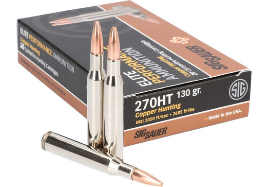 Sig Elite Hunting Copper rounds use premium-quality powders and primers for minimum velocity variation and yield a 1.8x diameter expansion. Perfected for easy rifle feeding, with an optimized nose geometry, and premium nickel-plated shell casings that deliver consistently reliable accuracy for taking down game.