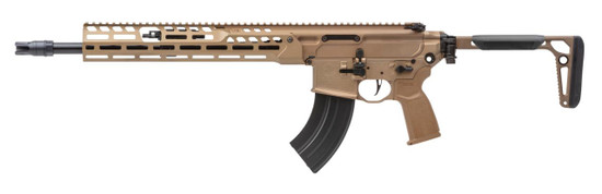 The MCX platform has long been SIG SAUERS breeding ground for developing the best rifle system in the world through extensive testing, continued innovation and customer feedback. SIG SAUER introduces the MCX-SPEAR LT, based on its predecessor the MCX Virtus the MCX-SPEAR LT has a lightened handguard with attachment screws for additional rigidity and a lightened profile barrel with improved accuracy. Other features of the MCX-SPEAR LT include an ambidextrous bolt catch and release on its lower, coyote anodized finish, minimalist stock for maximum compact foldability and AR15 style trigger compatibility. And the MCX-SPEAR LT brings the long awaited addition of the 7.62x39 caliber to the MCX family. Developed with a new latch system the 7.62x39 MCX-SPEAR LT was developed to handle the many varieties of 7.62 caliber ammunition while still maintaining reliability and smooth shooting.