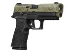 The P320-XTEN ENDURE COMP features a fully Cerakoted slide for extreme protection against the elements, with a Custom Works exclusive laser-etched topographic pattern. The P320-XTEN ENDURE COMP also features a 3.8" barrel for maximum accuracy. The slide is optics-ready with a PRO footprint and it comes standard with XRAY3 Day/Night Sights.