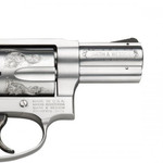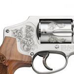 Smith & Wesson J-Frame revolver is designed to fire a full power round and is as simple and easy to use as it is reliable. The Model 640 is based on Model 40 Centennial. It is a small frame concealed hammer revolver which integrates the time-tested features of the original with modern advancements and competition specifications and features. This model has stainless steel diamond-tipped machine tool scroll engraving frame, cylinder, and barrel. It also has blade front and fixed rear sights, enclosed hammer, and engraved wood grips. Included is a wooden mahogany presentation case.