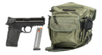 The Smith and Wesson M&P380 Shield EZ Bundle is a comprehensive package designed for ease of use and reliability. Part of the M&P Series, this semi-automatic pistol is chambered in .380 ACP and features a 3.675" barrel. The bundle includes the pistol with a black Armornite finish, three 8-round magazines, and a bug out bag. The pistol's overall length is 6.7", and it has a capacity of 8 + 1 rounds.