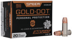 Our original Gold Dot line remains a benchmark for both self-defense and duty use, and it's earned the trust of law enforcement world-wide. It features a pressure-formed lead core that's bonded to an extremely uniform jacket a single atom at a time. This virtually eliminates separation on impact for more retained weight and penetration to crucial depths. Its Gold Dot hollow-point design expands consistently through the full range of barriers. Ignition and cycling are guaranteed thanks to sealed primers and nickel-plated brass.