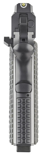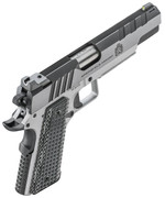 For those who want a pistol that combines cutting-edge defensive features with custom upgrades, the Emissary 5" 9mm is a serious user's pistol. With a Tri-Top slide featuring light-diffusing 40 line-per-inch serrations along the sighting plane and a heavy-profile forged stainless steel bull barrel, the 9mm Emissary delivers maximum accuracy. A forged hot salt blued slide and forged stainless steel frame with squared triggerguard and grenade-pattern checkering gives you a pistol ready for display or defense.