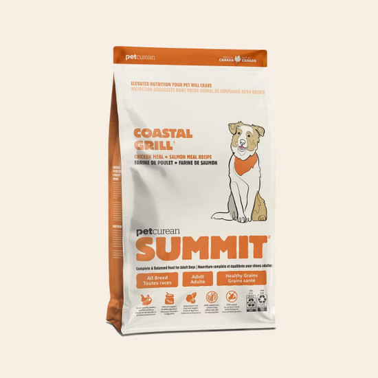 Inspired by the valleys & seas of British Columbia and the fresh flavours of a seaside grill, Petcurean Summit Coastal Grill™ combines premium-quality chicken meal & salmon meal with vegetables, fruits & grains for flavour in every bite.