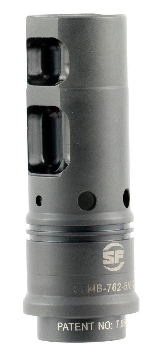 SureFire SFMB muzzle brake suppressor adapters greatly reduce both recoil impulse and muzzle rise so that your weapon tracks straight back, keeping you on target for faster shot-to-shot recovery. Its proprietary Impulse Diffusion design minimizes side blast and rear-directed concussion effects. Precision machined from U.S. mill-certified heat-treated stainless steel bar stock and DLC-coated for extreme durability, they are available for a variety of weapon calibers and muzzle thread specs, and every SFMB serves as a rock-solid mounting adapter for SureFire's combat-proven SOCOM Series Fast-Attach suppressors. The SFMB design incorporates multiple bearing surfaces to ensure superior suppressor alignment. Blind pilot holes at the 3 o'clock and 9 o'clock positions enable fine-tuning of recoil characteristics for individual shooting styles or ammunition characteristics. Blind pilot holes at the 6 o'clock position enable indexing the adapter at bottom dead center. All that's required is a basic hand drill and appropriate drill bits.