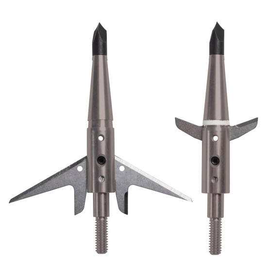 Slice Twice! Swhacker's legendary wing blade design cuts through the first layer of hide, bone and fat, causing the NEW arced blades to deploy internally to deliver lethal damage to vital organs. This two-slice technology assures greater retained momentum and a higher percentage of pass-through shots.