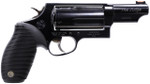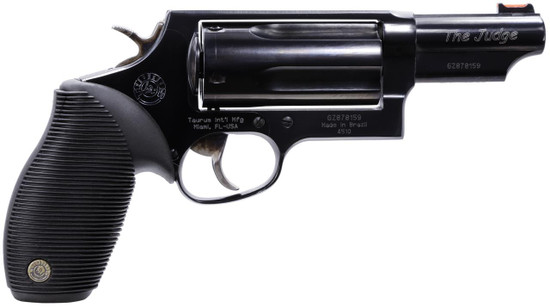 The Taurus Judge Magnum is capable of chambering both .410 gauge 2.5" or 3" shotshells and 45 Colt ammunition. This amazing combo is ideal for short distances where most altercations occur, or longer distances with the 45 Colt ammo. Taurus has finely tuned the rifling to spread the shot pattern at close quarters or to guide the .45 caliber bullet to the target. This model has a 3" barrel with a fiber optic front sight and fixed rear. It has a matte black metal finish and a black Ribber grip.