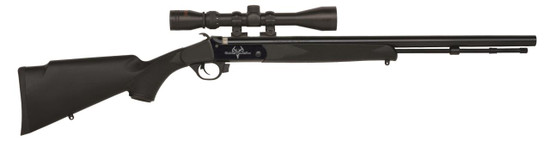 This model comes with a 3-9x40 Traditions® Duplex matte black scope mounted and boresighted. It does not come with sights.