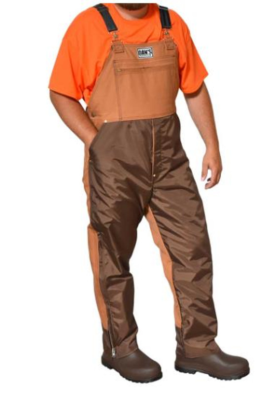 Our newly re-designed Upland Briar Bibs are an excellent choice for upland game and bird hunters. They are constructed with high quality, breathable, 10 oz. army duck material that will keep you cool on those warmer days afield. 400 denier nylon facing on the front up to the waist gives you briar protection and easily sheds burs and stickers. Comfortable enough to wear alone or over your jeans. Features include a zippered chest pocket with shell loops and a 24" heavy duty YKK leg zipper for easy on and off.