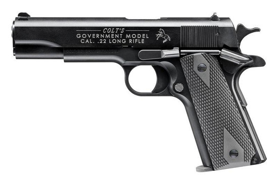 1911-style field stripping. Rubber grips. Authentic Colt Government Model. Full functioning thumb and grip safeties. Authentic half-cock mechanism. Accepts aftermarket accessories. All steel lock work. Drift adjustable rear sight. Removable drift adjustable front sight. Internal plus pinned ejector.