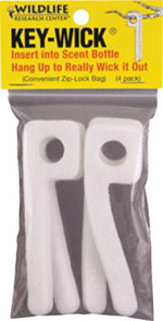 Pro-Wick is a high intensity dispenser made from special synthetic felt that will not alter the smell of your lure. Key-Wick is a special key shape design that lets you dip them into a bottle of liquid scent with no mess, then hang on a branch or twig. Ultimate Scrape Dripper is a patented dripper that is the deadliest method known to keep a scrape fresh and working. Activated solely through the rising temperature, it drips your lure only during the day, and shuts off at night or during rain when temperatures are not rising.