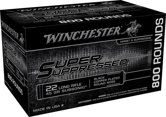 Winchester Super Suppressed 22 LR - 45 Grain Black Copper Plated RN - 1090 FPS - 800 Rounds