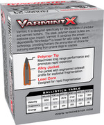 Varmint X is designed specifically for the demands of predator and varmint hunters. The sleek, polymer-tipped bullets are explosive upon impact. Varmint X combines the proven dependability Winchester is known for with today's latest technology, providing hunters the ammunition of choice for pursuing everything from prairie dogs to coyotes.
